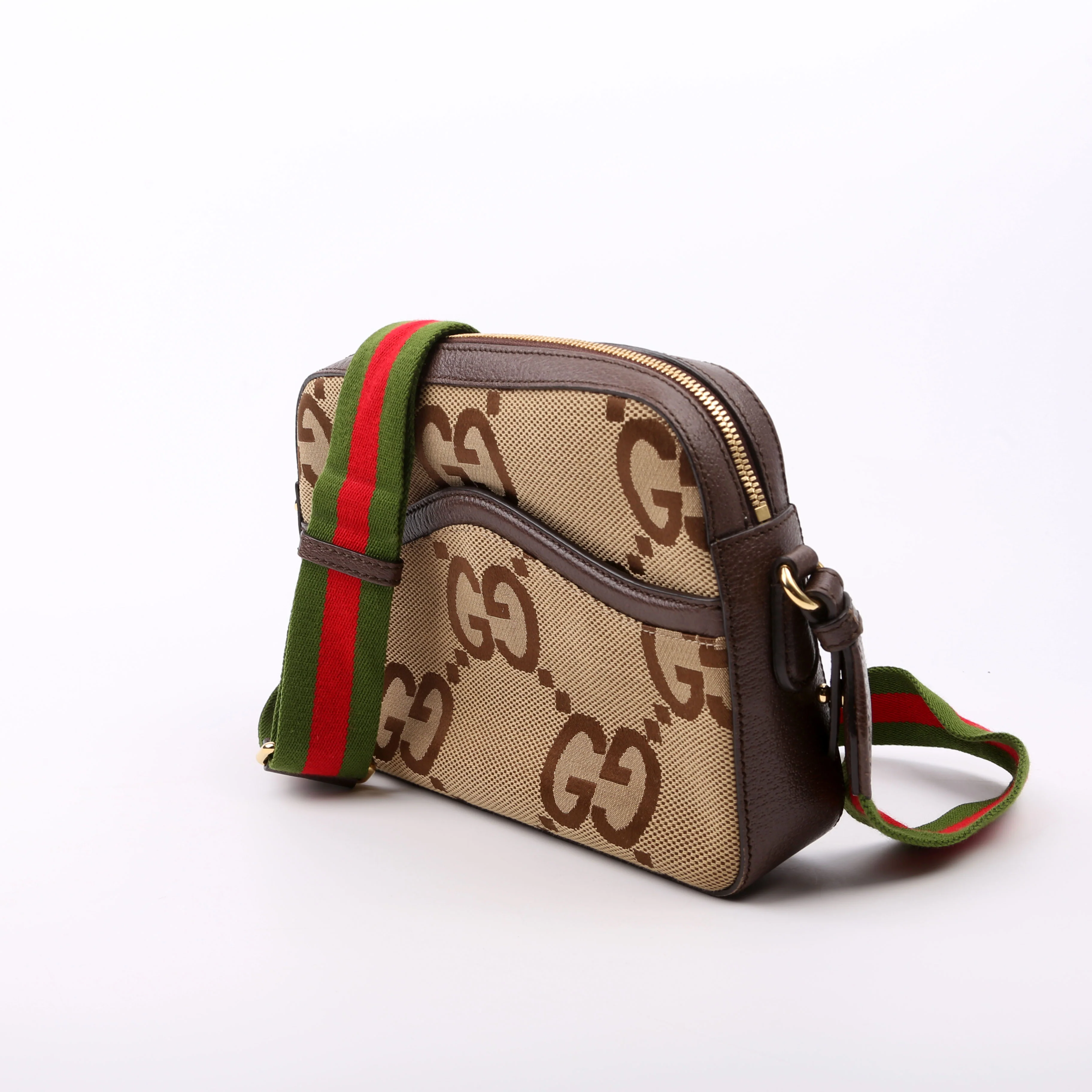 This pre-owned Gucci Jumbo GG Canvas Messenger is guaranteed 100% authentic. The exterior is in the classic Gucci Jumbo GG canvas.
