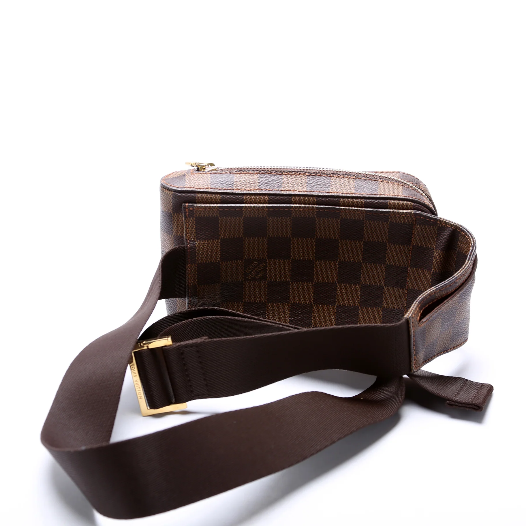 This pre-owned Louis Vuitton Geronimos is guaranteed 100% authentic. The exterior is in the classic Louis Vuitton Damier Ebene coated canvas.