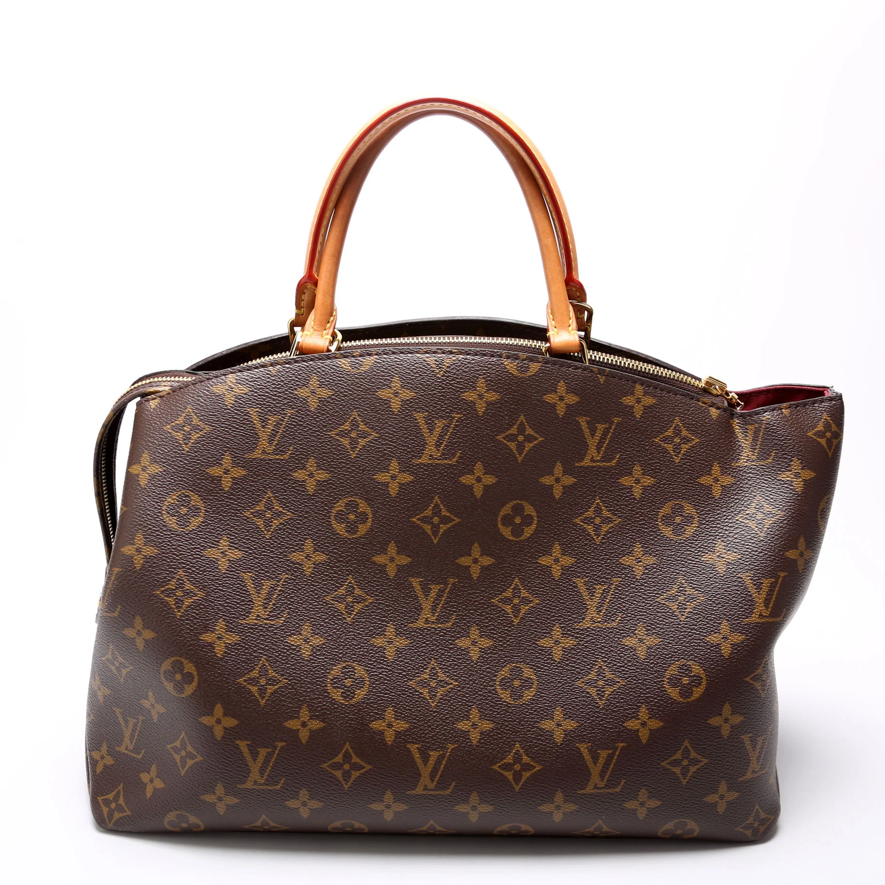 This pre-owned Louis Vuitton Grand Palais is guaranteed 100% authentic. The exterior is in the classic Louis Vuitton coated canvas.