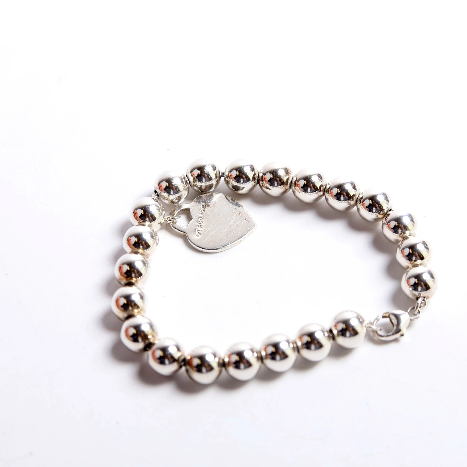 This pre-owned Tiffany & Co. Please Return Bead Mini Heart 925/750 Bracelet is guaranteed 100% authentic.
