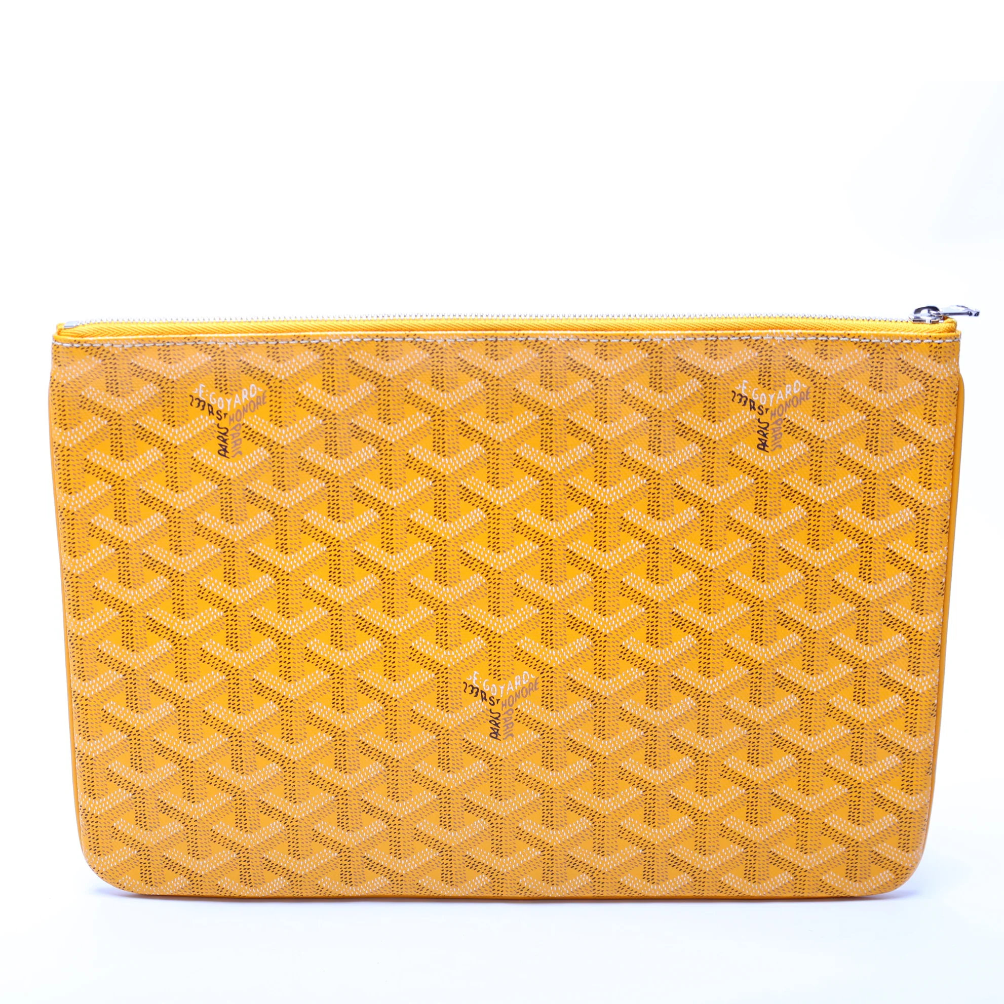 This pre-owned Goyard Senat Pouch MM is guaranteed 100% authentic. The exterior is in the classic Goyard Goyardine coated canvas.